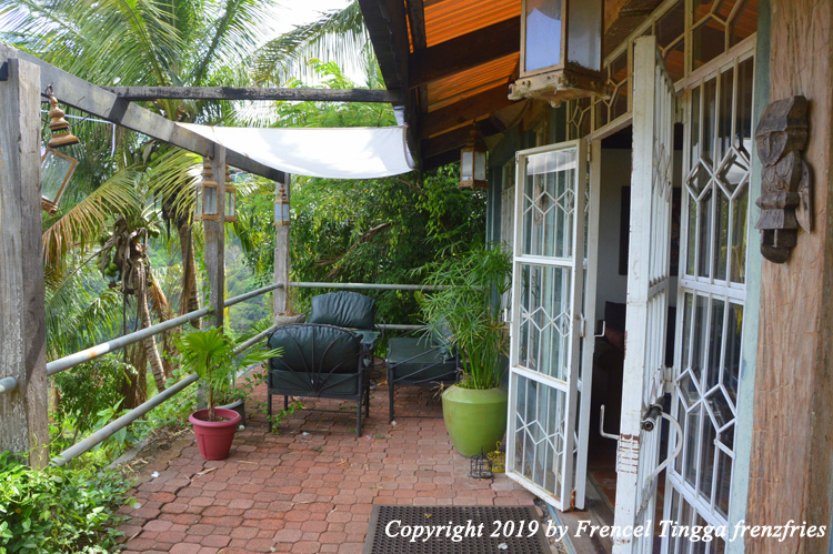 The outdoor area is consist of three levels – the balcony area with lounging outdoor furniture, the lower balcony area with seating for four people, and lastly my favorite spot, the viewing deck under a talisay tree. The garden may not be manicured but it blends with the wild and virgin forest upfront.